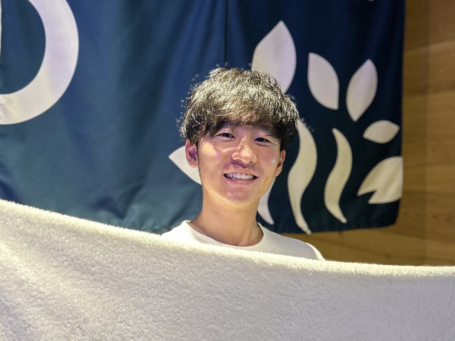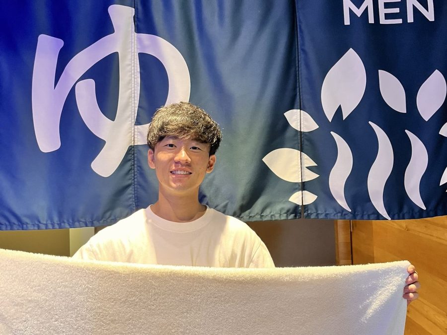 こんにちは! 4月からおふろcafé ハレニワの湯で働いている首藤勇星です。