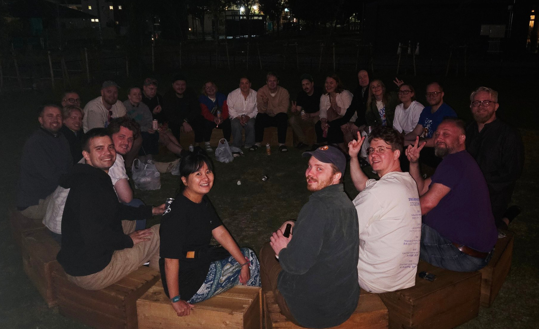 その夜、ホテル前の芝生では「Kiitoskierros」という会が開かれていました。これは普段言えない感謝を一人ずつに伝えるという素敵な習慣。一部のメンバーは今回のライブを最後にバンドを卒業することもあり、メンバー同士が笑顔と涙で「Kiitos(ありがとう)」を交わしあったそうです。