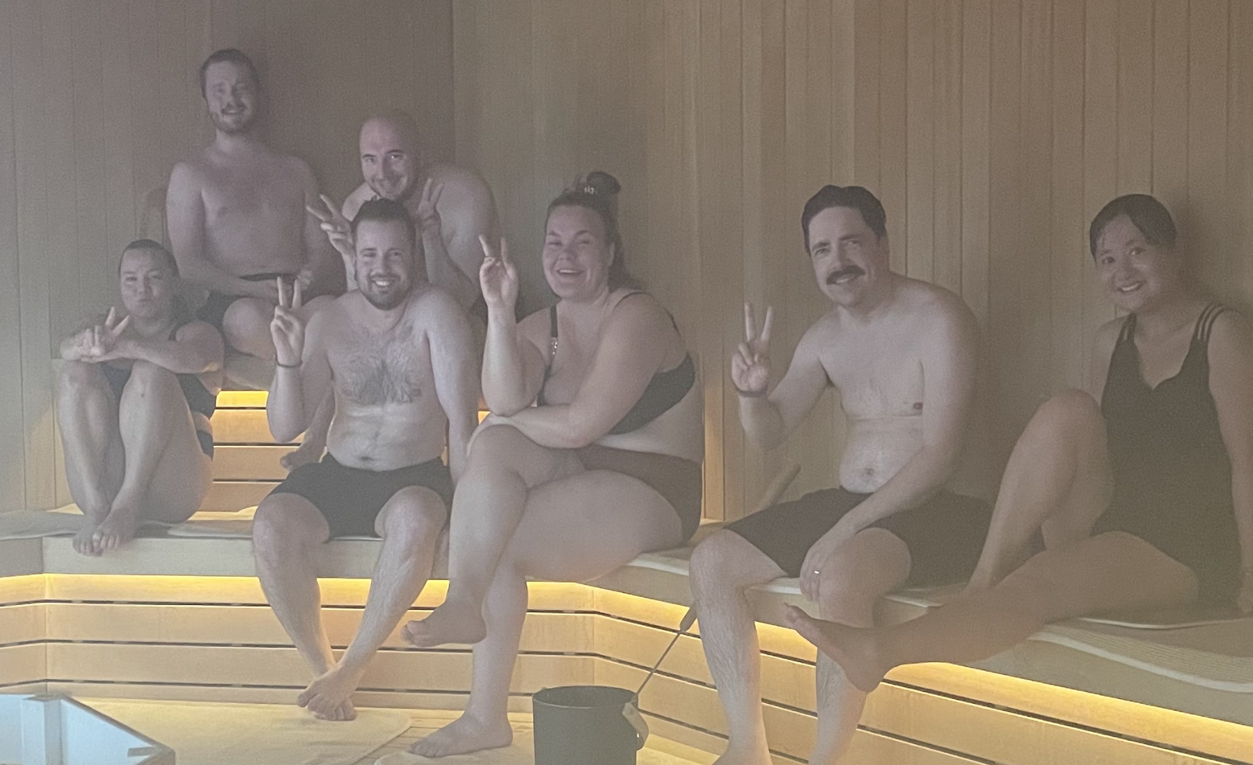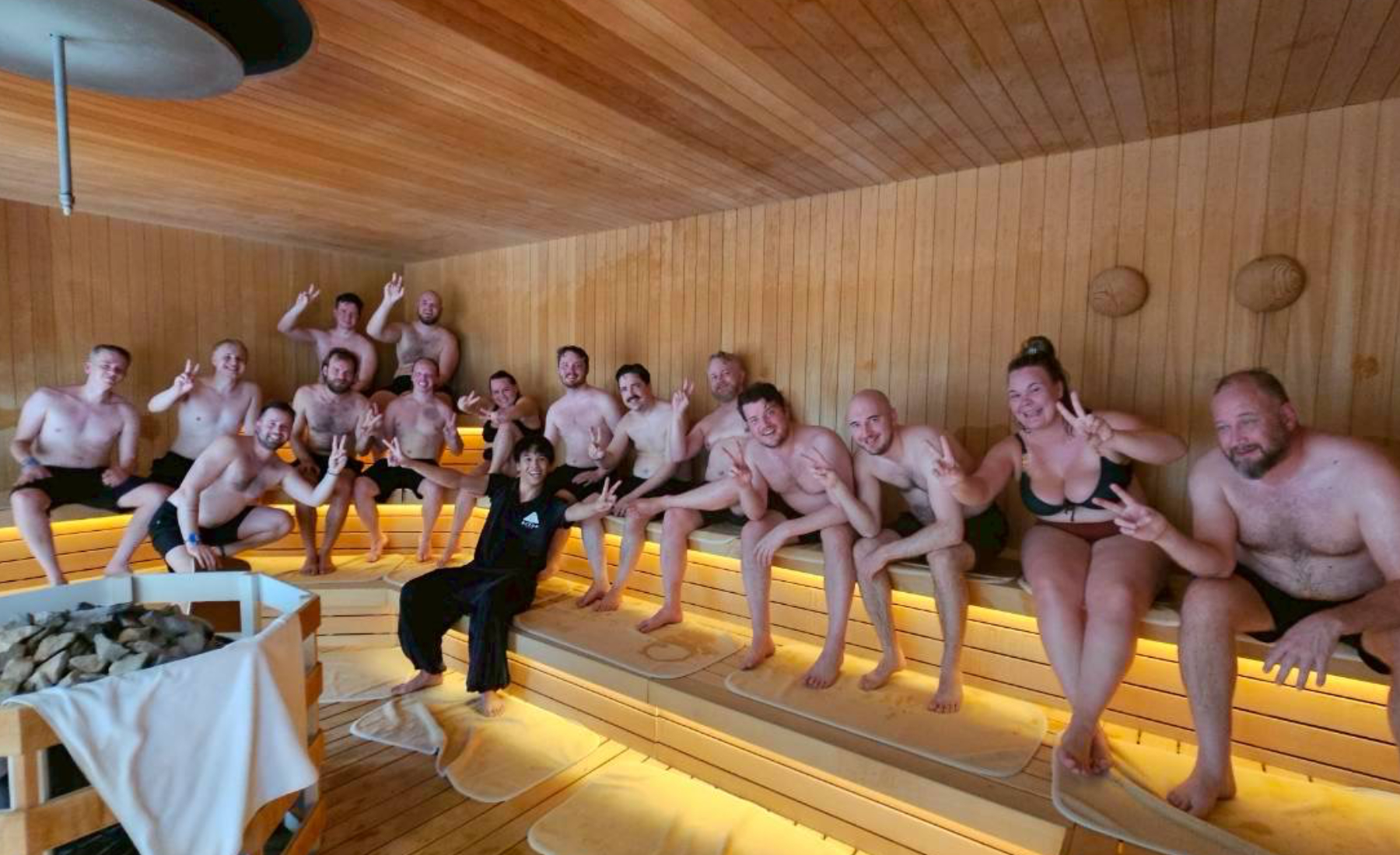 サウナの中でパフォーマンスを行う文化がないフィンランドの方々にとっては初めての体験だったようで、笑顔と歓声に包まれた特別な時間になりました。なんとバスの出発時間10分前までサウナを楽しんでいただきました!(笑)
