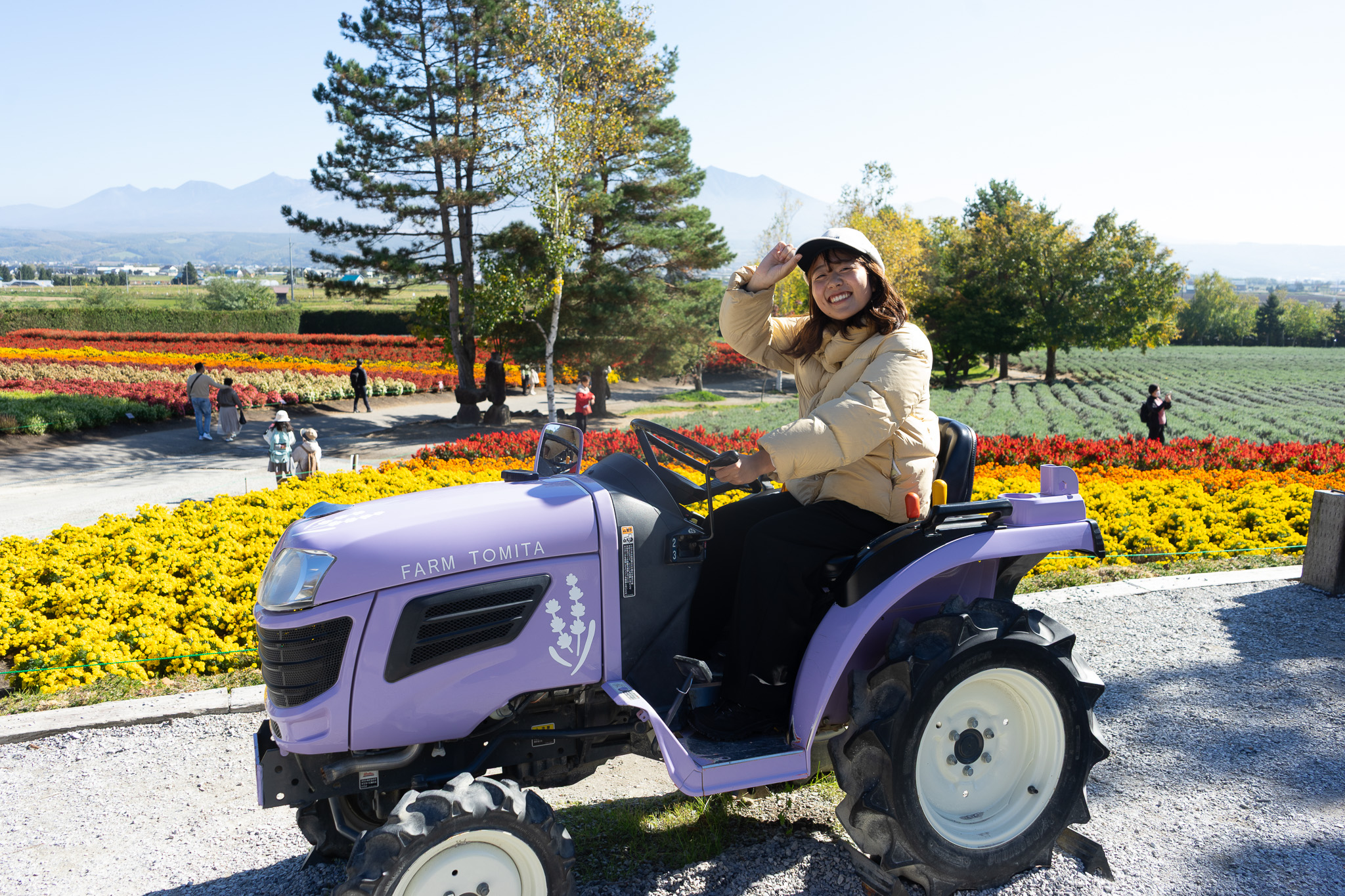 富良野といえば一面に広がるラベンダー畑を思い浮かべる方も多いのではないでしょうか? 日本で最も歴史があるのがこの「ファーム富田」。ベストシーズンは6月ですが、10月でもカラフルな花畑が広がっており、素敵な空間でした。