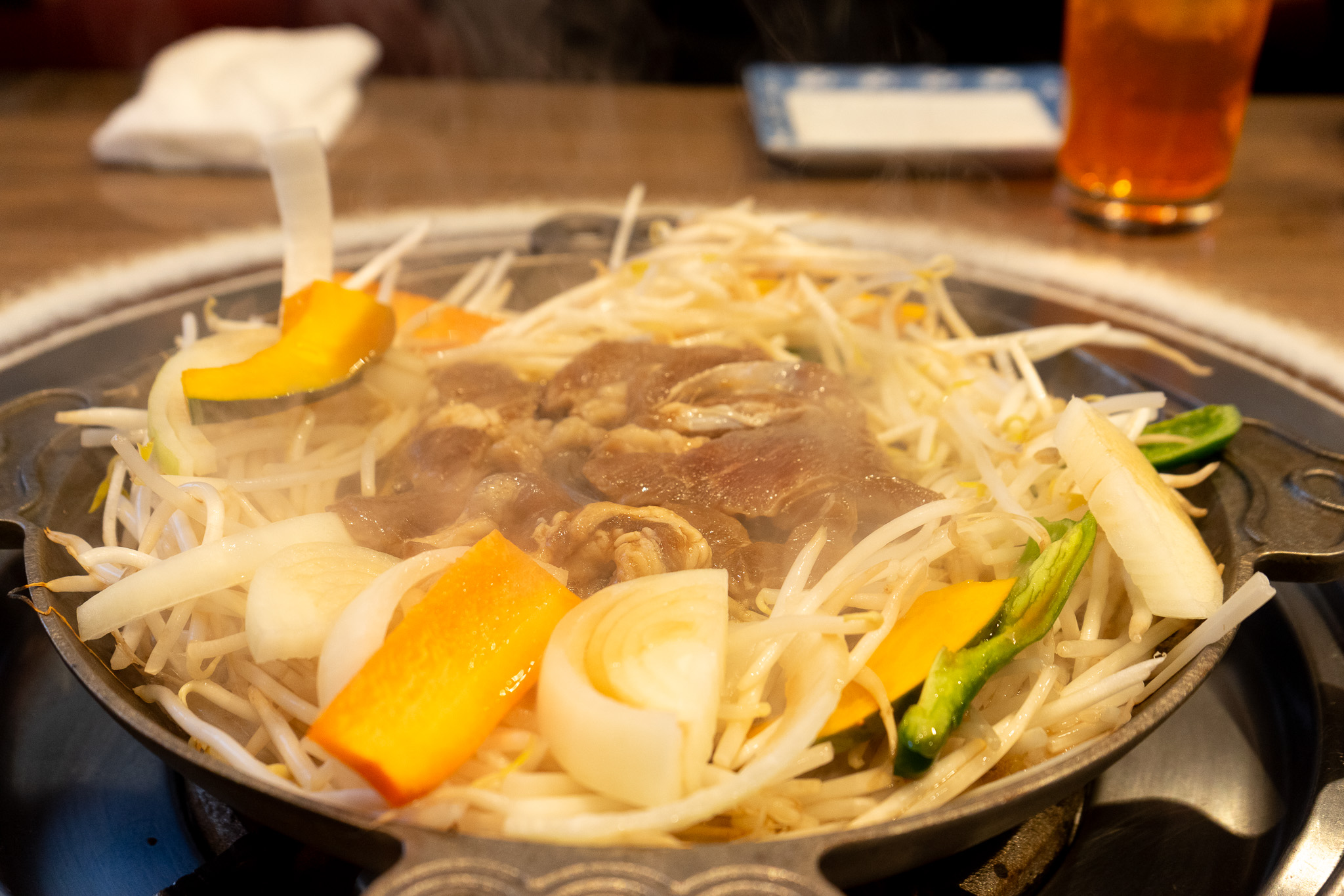 10年以上かけて開発したとされるタレに漬け込まれた柔らかいラムと、松尾ジンギスカン特製の鍋でほどよく焼かれた野菜の相性が抜群。さっきまで腹が圧迫されていたはずが、するするとお肉が入っていきました…. 恐るべし。