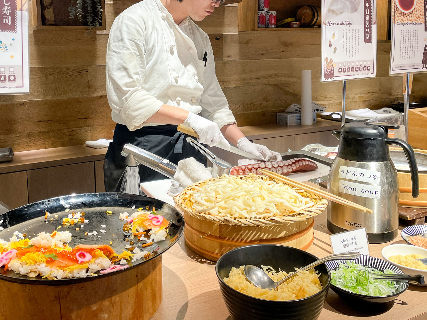 2日目の朝はホテルナトゥールヴァルト富良野の豪華朝食ビュッフェからスタート。もうこれで北海道の食はほとんど体験できたのでは? くらいの量と質のビュッフェでした。