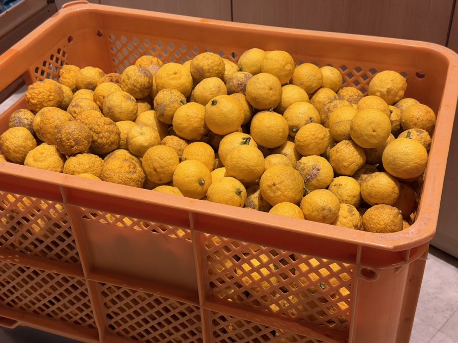 ゆずを2kg以上譲っていただいたお客さまに招待券を1枚お渡ししていますが、最終的に湯守座ではコンテナ4箱分、あげき温泉では3箱分ものゆずをお譲りいただきました!