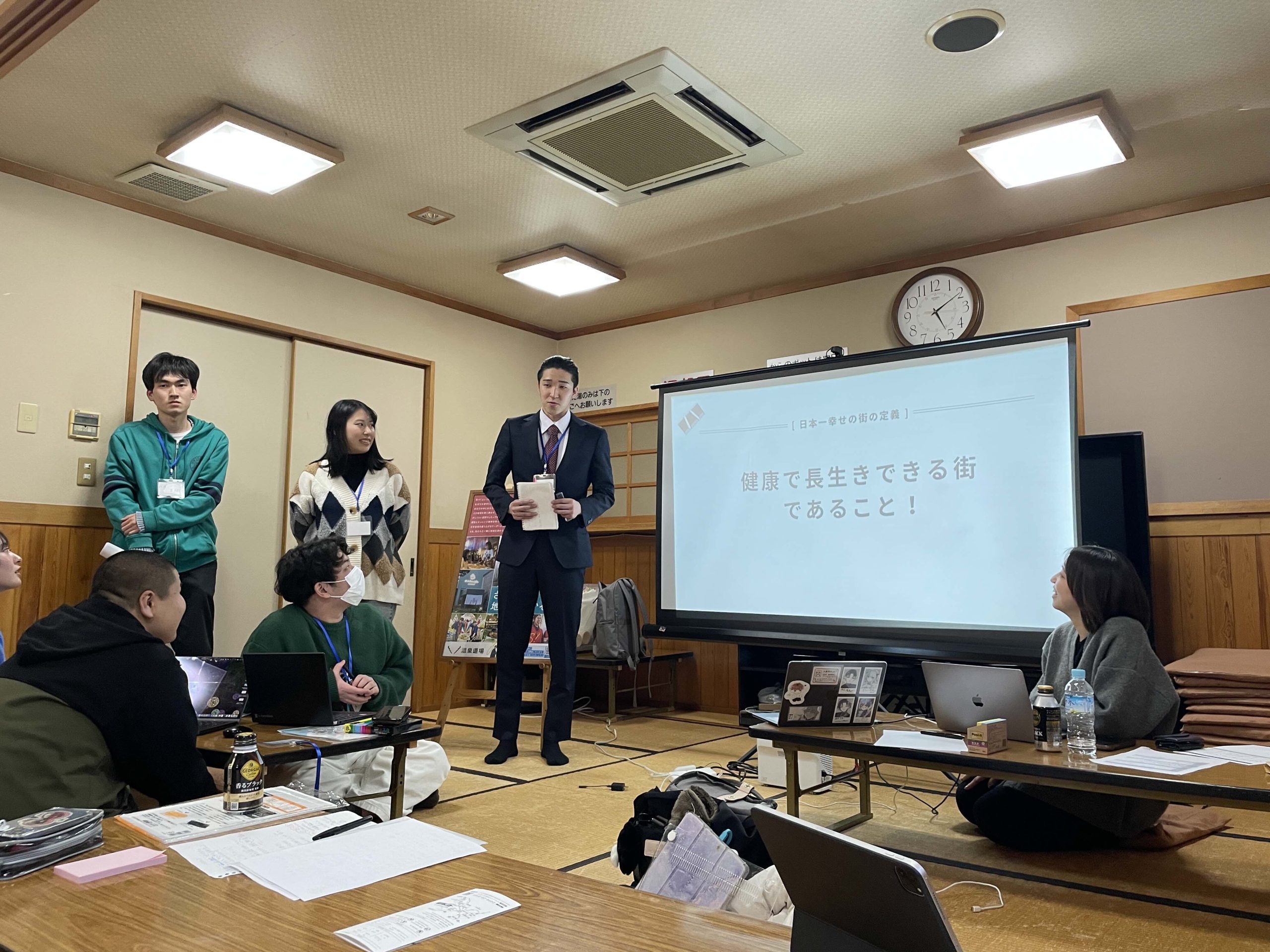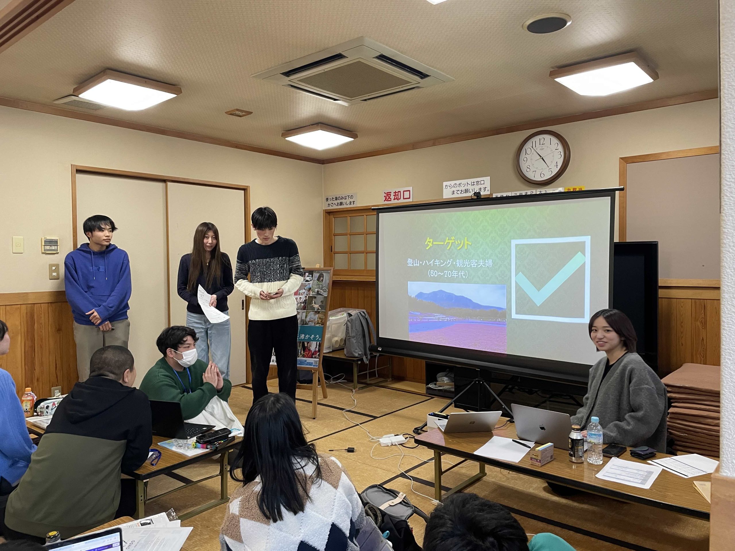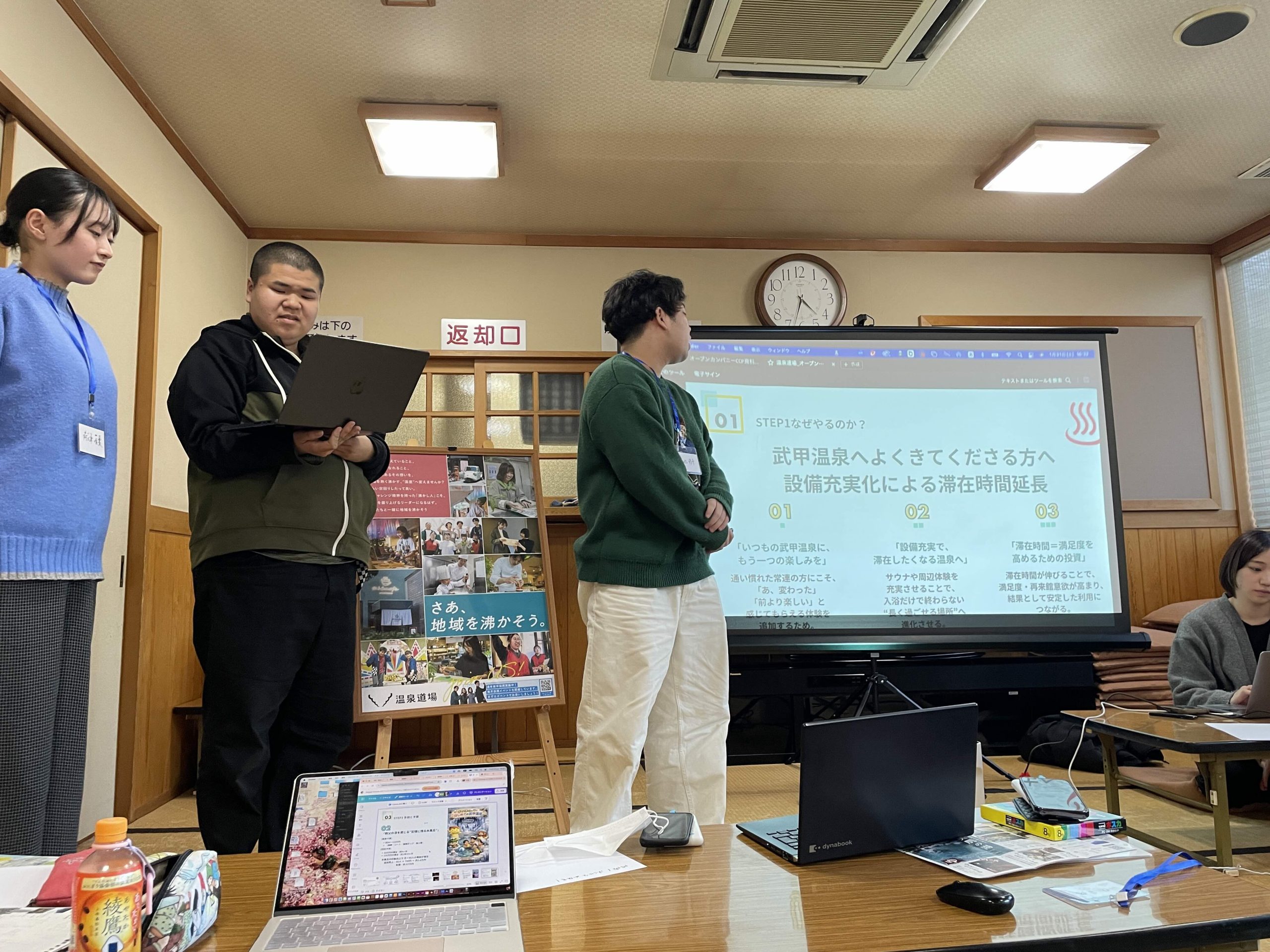 施設の現場に立ち、チームで考え、発表する。短い時間ではありましたが、温泉道場の「地域を沸かす」取り組みを体験していただくことができました。