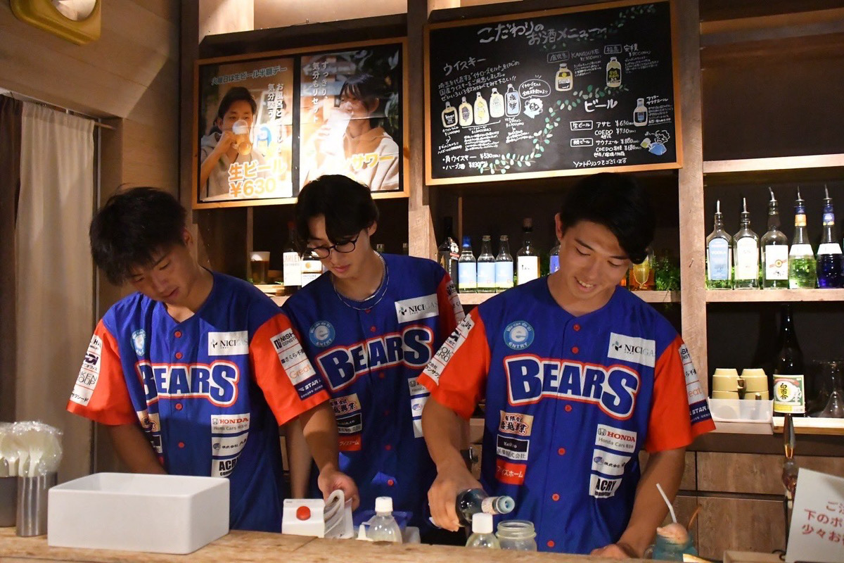館内の「ベアーズカフェ」では、毎月ヒートベアーズの選手と交流ができる「1日店長」イベントを開催しています。選手が注文を受けたり、食事を提供したり、サウナ室内で「熱波」を行います。日程は、ハレニワの湯のホームページやSNSにてご確認ください。