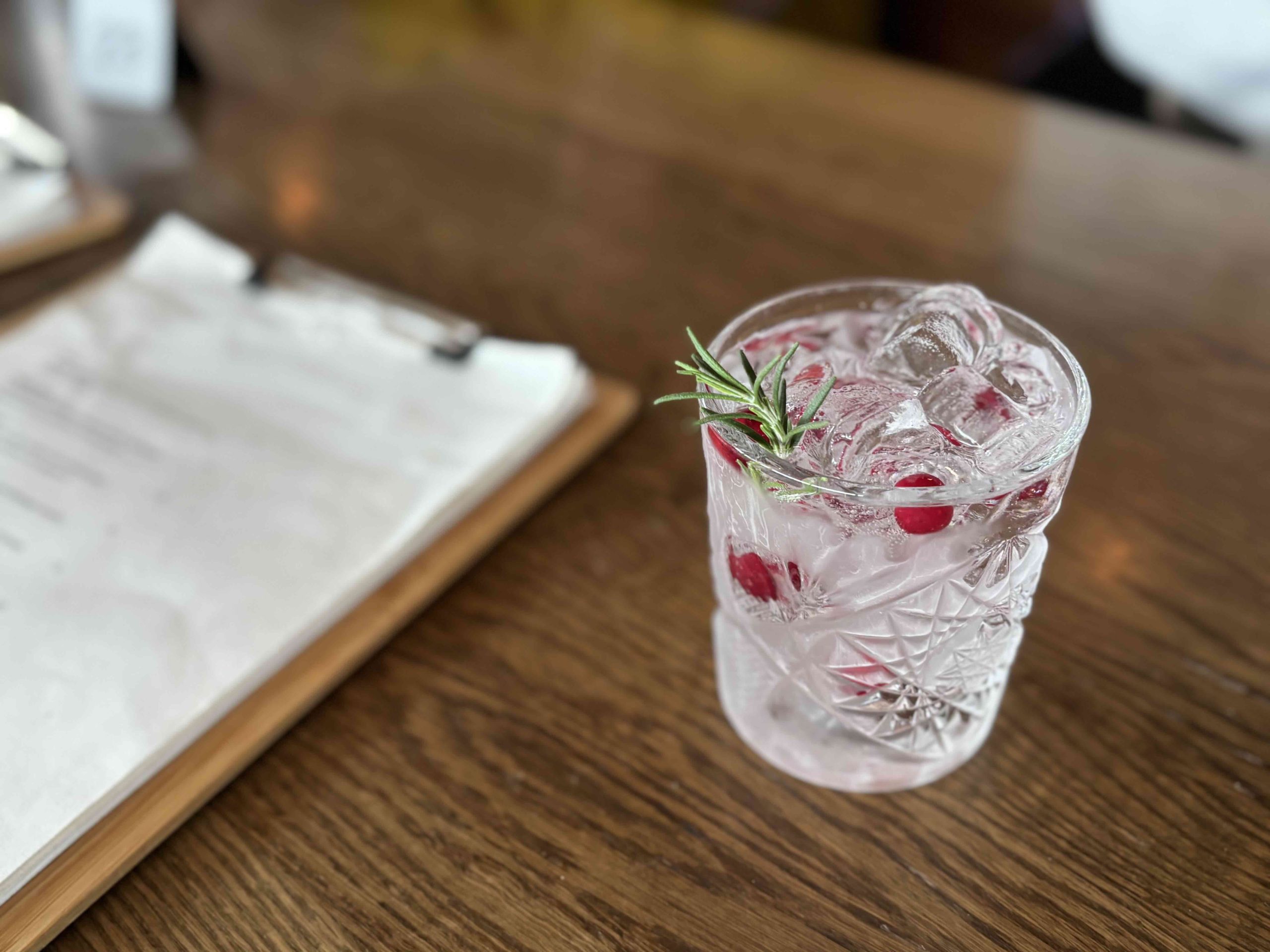 インターナショナル・ワイン&スピリッツ・コンペティション2015のジン・トニック部門で最高賞であるトロフィーを獲得した、フィンランド産のクラフトジンをフィンランドで買い付け、ベリーとローズマリーを添えた「ナプエスタイル」と呼ばれる楽しみ方で提供します。