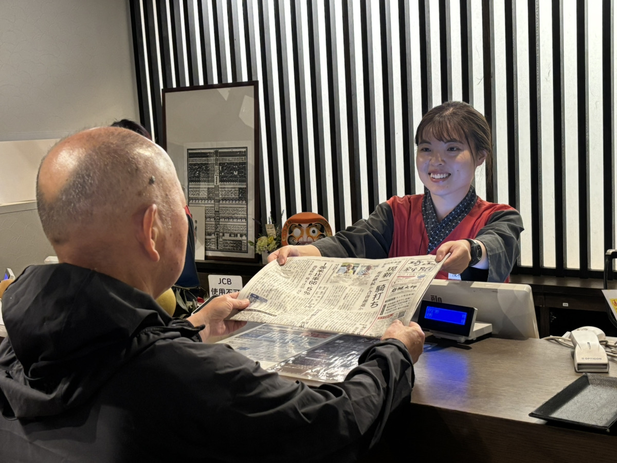新聞は確かなニュースを伝えるメディアであるとともに、活字⽂化の主要な担い⼿でもあります。「おふろから⽂化を発信する」を企業理念としている温泉道場は、今回の企画を通じて多くのお客さまに新聞に触れていただき、その魅⼒を再発⾒いただきたいと考えます。