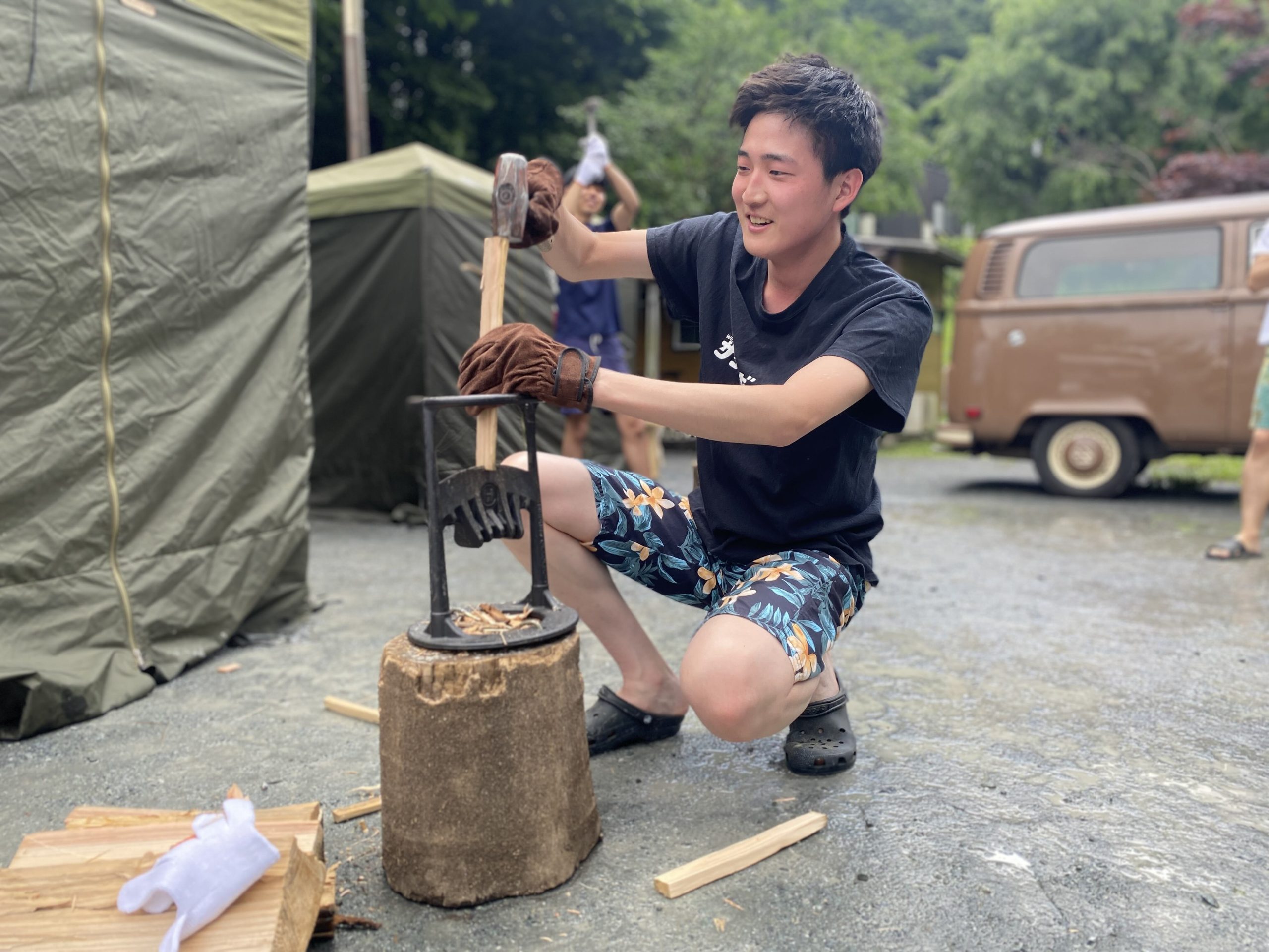 サウナの本場フィンランド発祥の「世界サウナ温め選手権」。テントサウナ内の温度をどのチームが一番早く指定温度まで温められるかを競います。薪割りや火起こしをチームで分担することで、自然に協力や役割が生まれる、研修や社員旅行に最適なアクティビティです。
