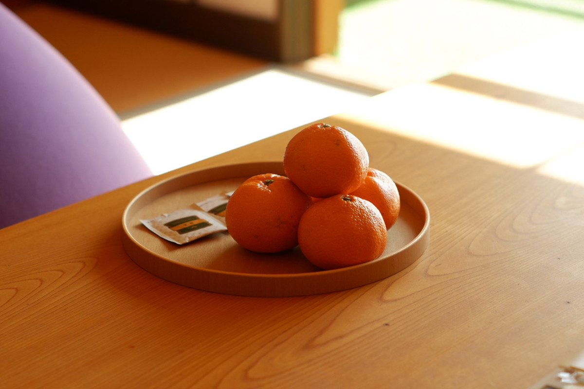 ご宿泊のお客さまへは客室に「ウェルカムみかん」をご用意。みかんの名産地としても知られる湯河原の、地元産みかんを提供します。さらに、12月8日(月)は日帰り利用のお客さまにもみかんをお渡しします。