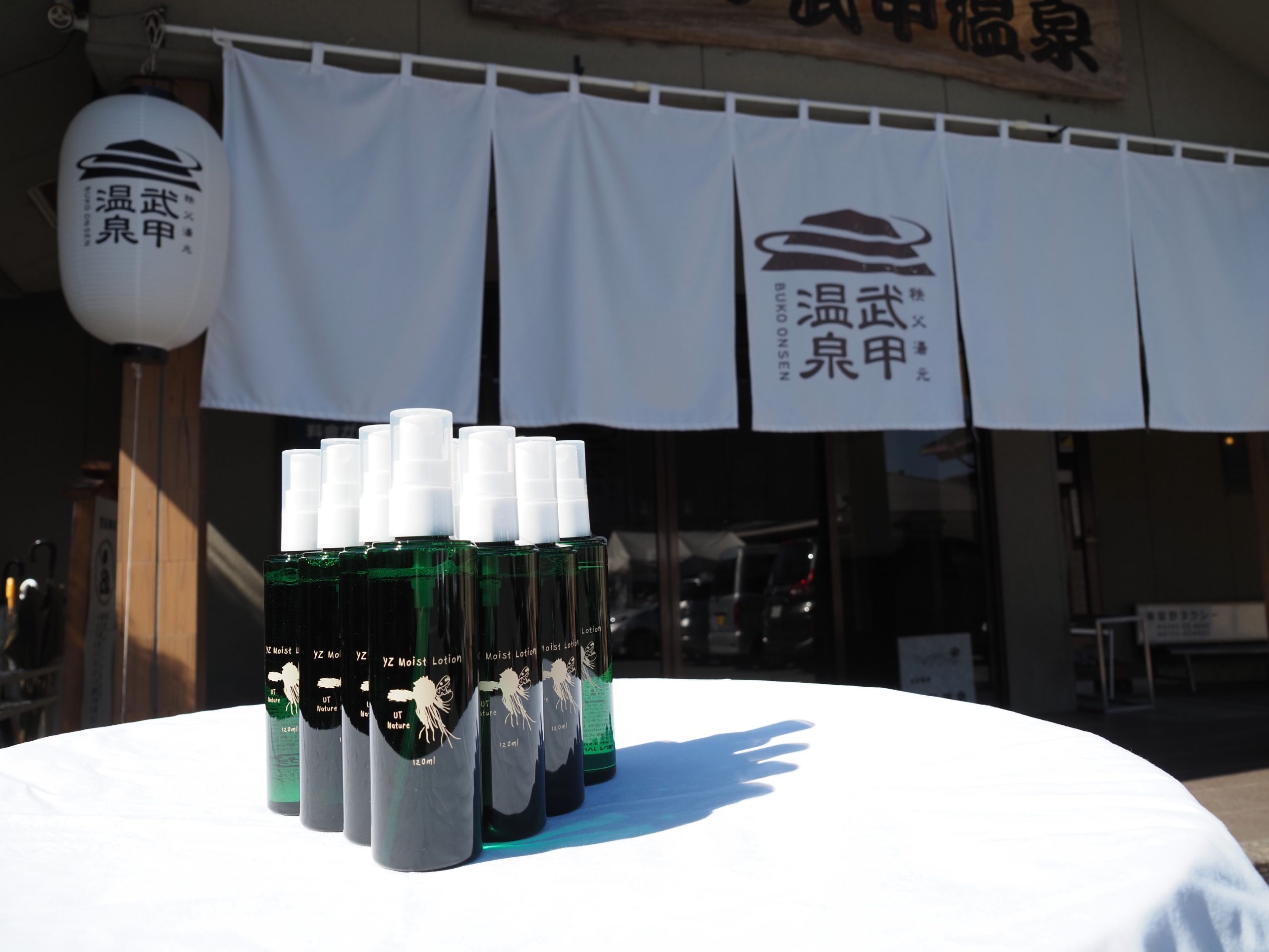 ナチュラルスキンケアブランド「UT Nature」が作る横瀬の水や蜂蜜、緑茶を使用した保湿化粧水「YZ モイスト ローション」を男女脱衣所に設置します。横瀬の3つの恵みと、その他7種のオーガニック成分を含む、天然成分97%で作られた化粧水をぜひお試しください。