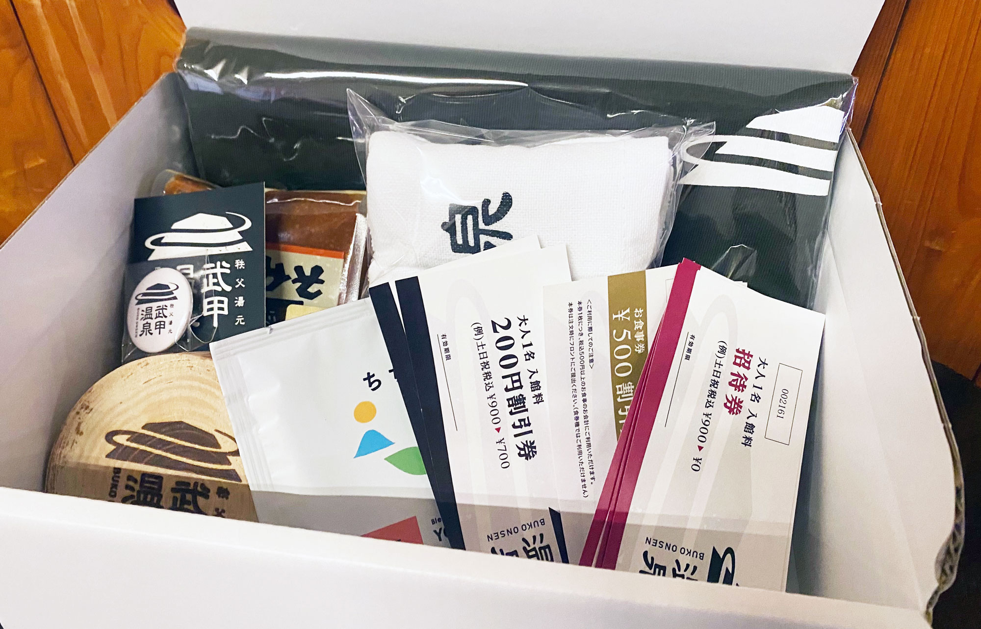 武甲温泉の招待券やオリジナルアイテム、秩父のお土産などを詰め込んだお得なギフトセットを10セット限定で販売します。