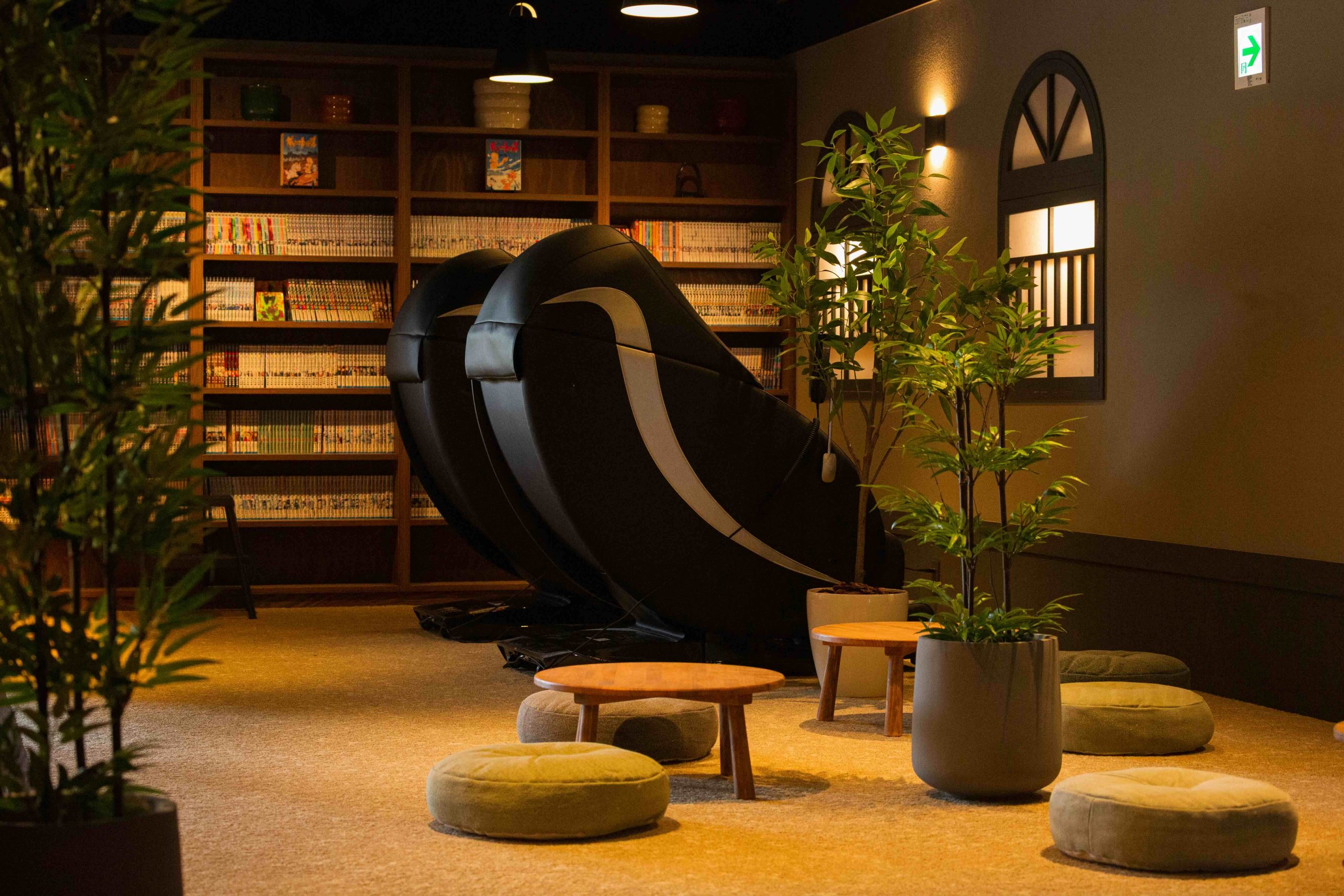 3,000冊の漫画や雑誌、無料で利用できるマッサージ器2台を備えています。