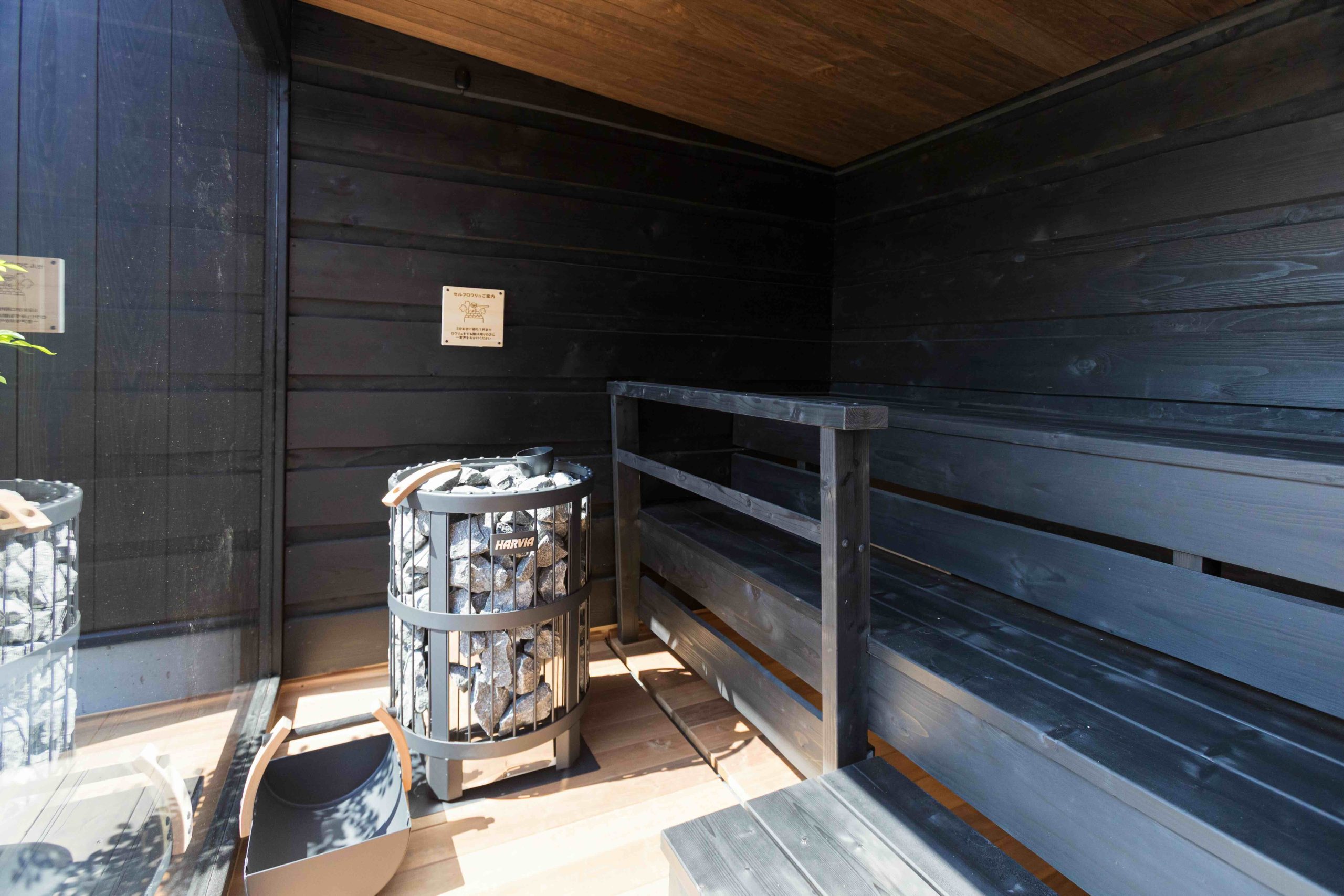 サウナの本場フィンランド・ハルビア社のサウナ「Legend」が露天エリアに登場。力強い熱気が身体を芯から温めます。こちらもセルフロウリュ可能です。