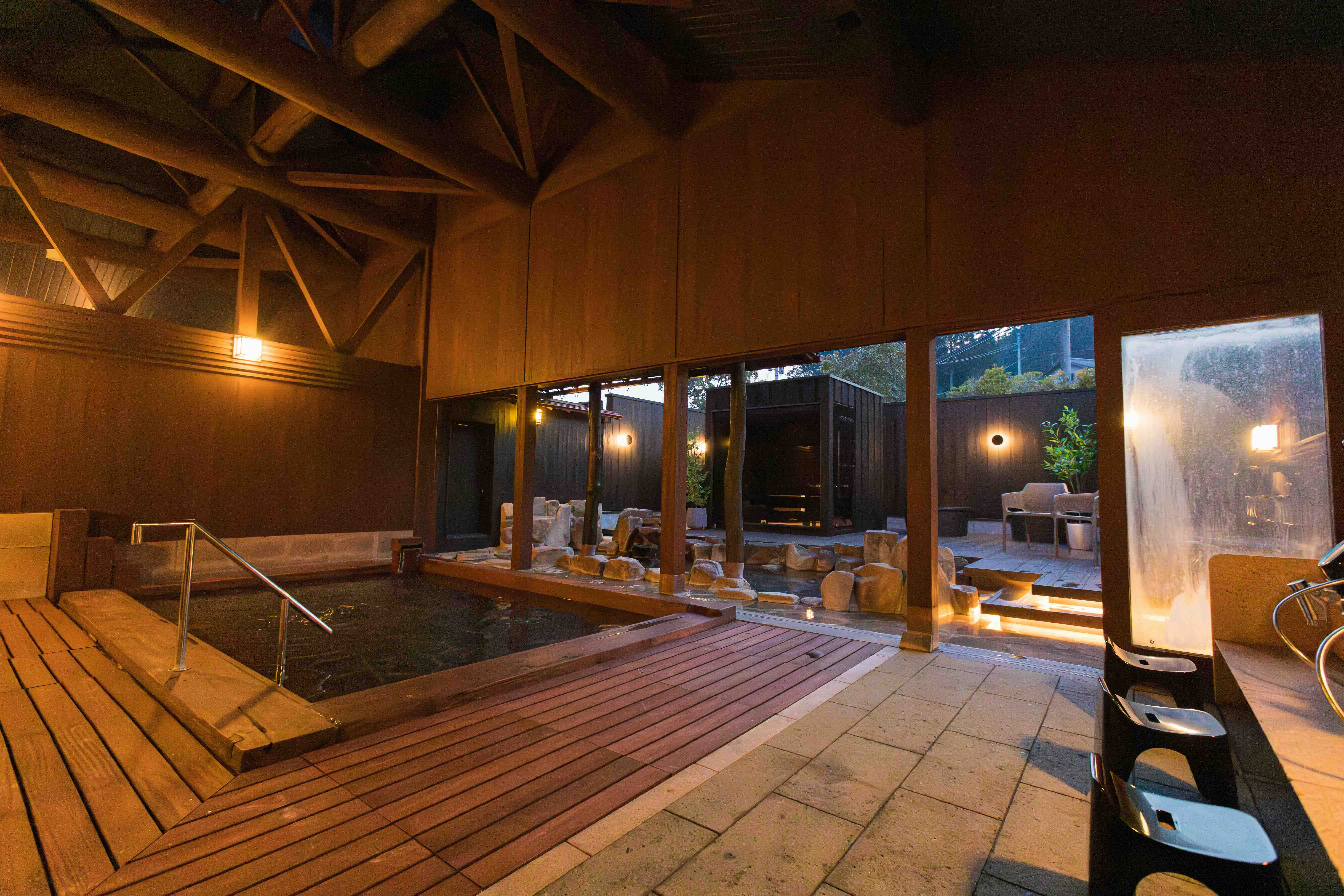 大森の湯の魅力である開放的な浴室や、いろり茶屋の風情ある作りはそのまま生かしつつ、お客さまにお楽しみいただけるアイテムを充実させました。浴室には2種のサウナの導入、館内はゆったりとくつろげるスペース。いろり茶屋はお食事メニューをリニューアルしました。ご家族やお友達同士など、さまざまなシーンでご利用いただけます。