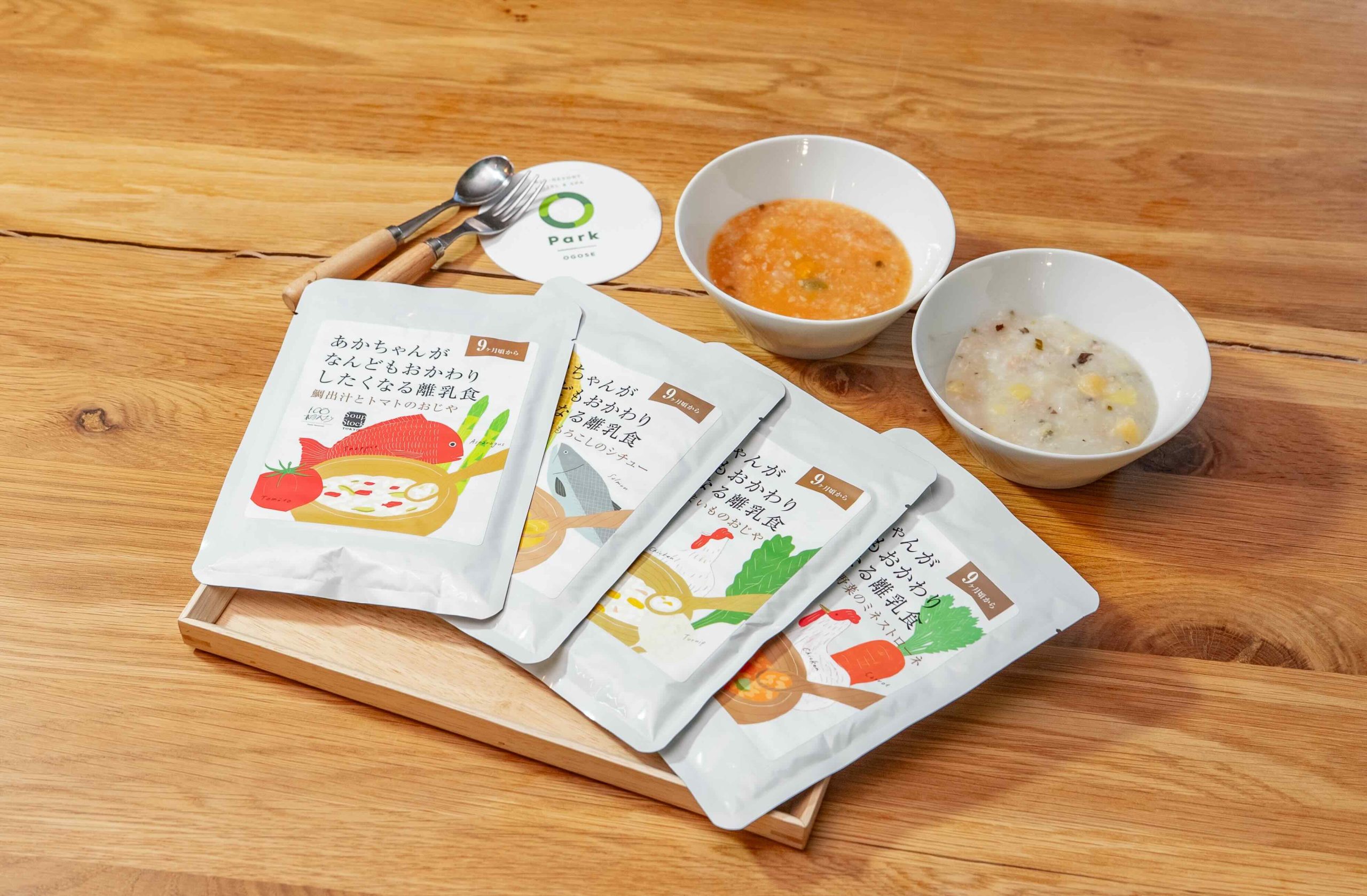 離乳食はスープ専門店「Soup Stock Tokyo(スープストックトーキョー)」の「あかちゃんがなんどもおかわりしたくなる離乳食」をご用意しています。