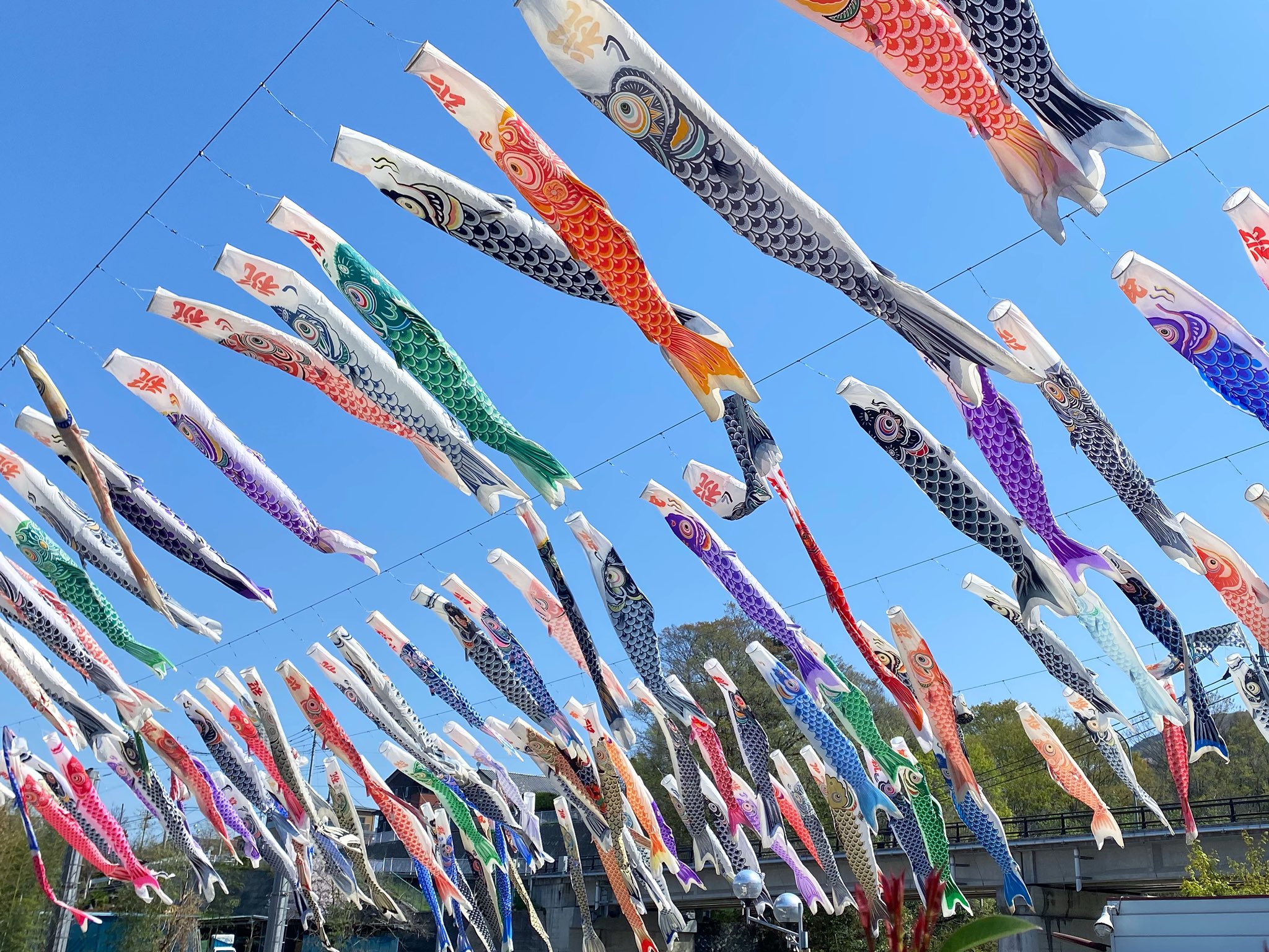 「横瀬鯉のぼりまつり」は、毎年開催される横瀬町の名物企画で、武甲温泉の真横を流れる横瀬川の上空をたくさんの鯉のぼりが彩ります。