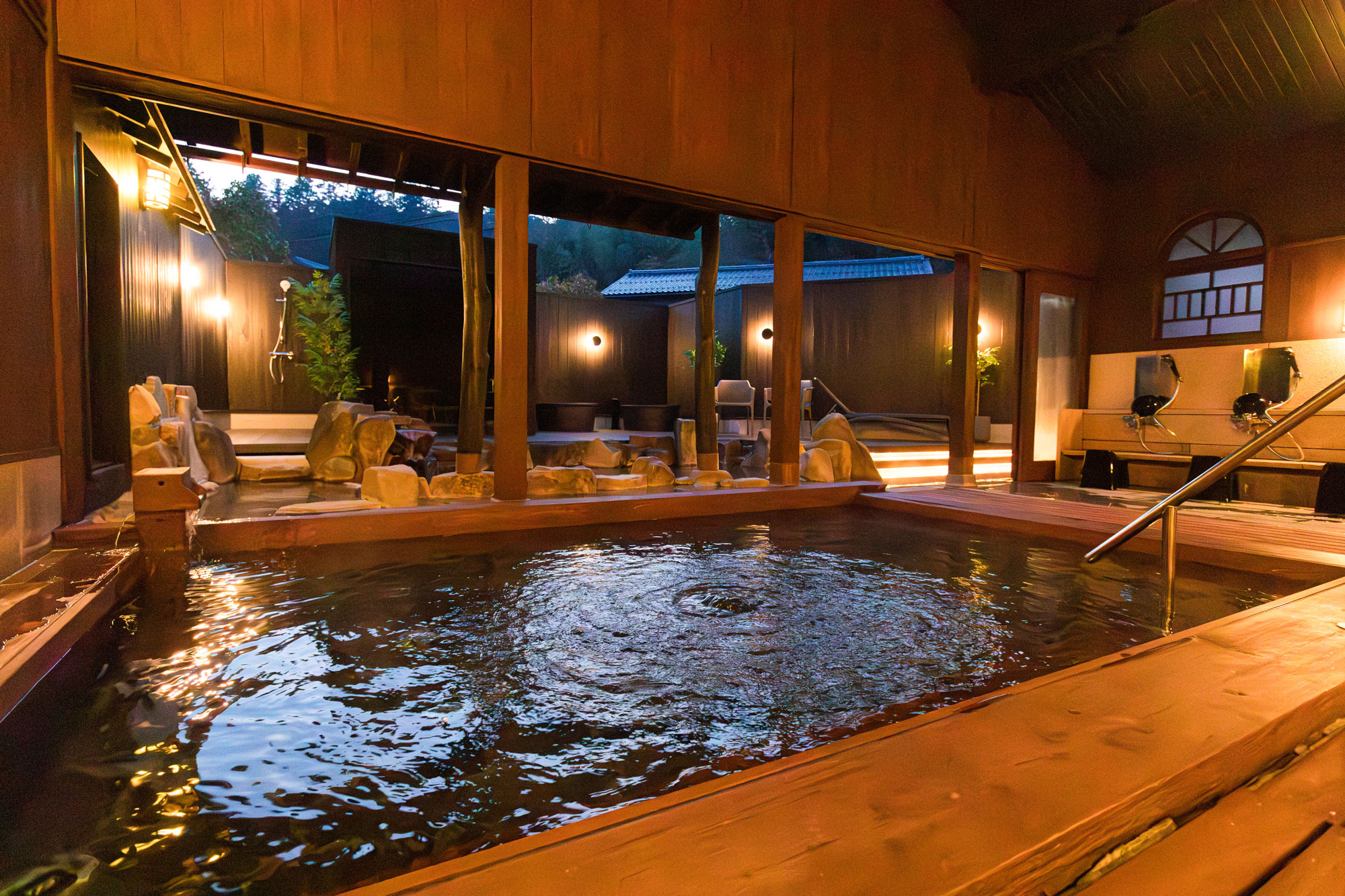 大森の湯の魅力である開放的な浴室や、いろり茶屋の風情ある作りはそのまま生かしつつ、お客さまにお楽しみいただけるアイテムを充実させました。浴室には2種のサウナの導入、館内はゆったりとくつろげるスペース。いろり茶屋はお食事メニューをリニューアルしました。ご家族やお友達同士など、さまざまなシーンでご利用いただけます。