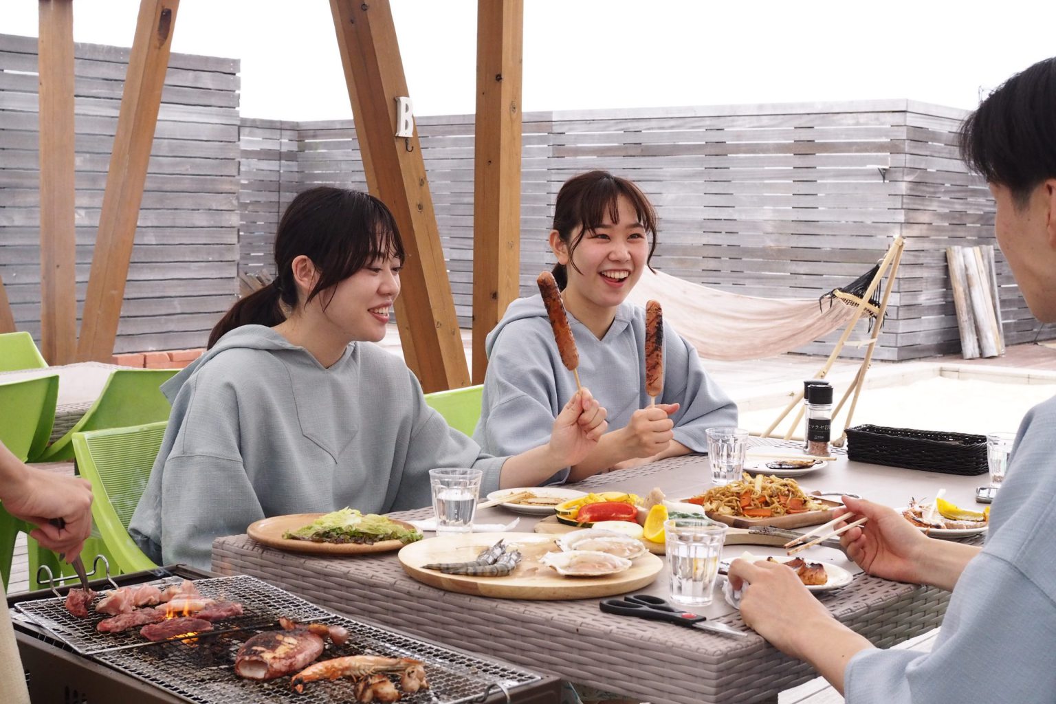 食材・機材はすべておまかせで、屋上でのびのびBBQをお楽しみいただけます。昼は青空の下で、夜は夜風の中でちょっと贅沢なひとときを。