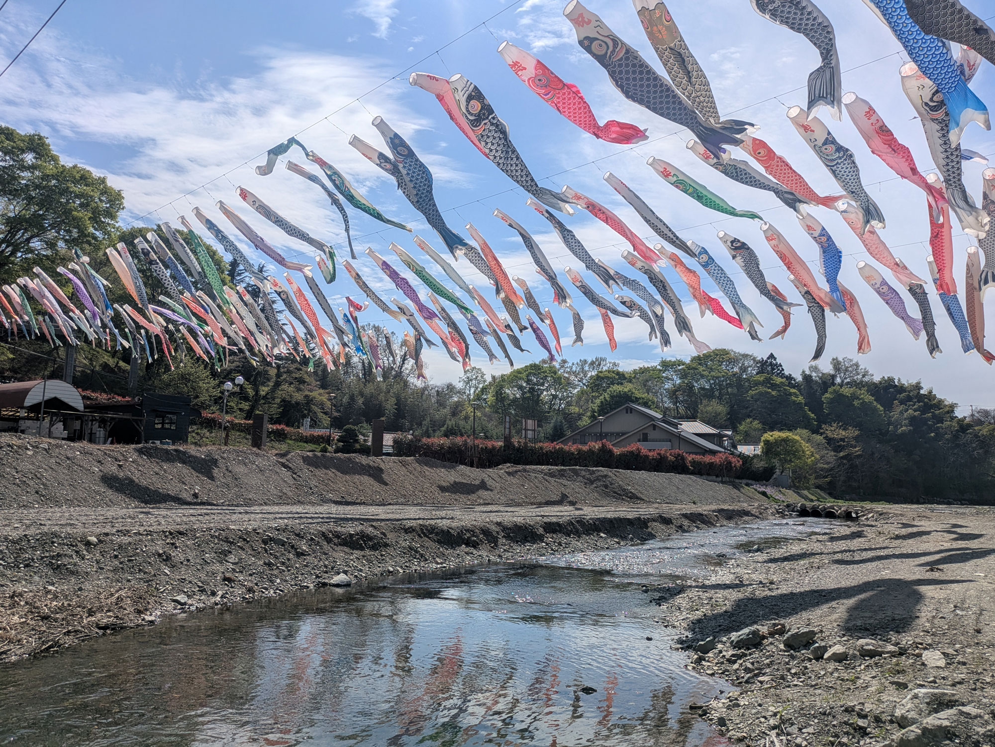 武甲温泉の目の前では5月6日まで横瀬川の上空を約180匹の鯉のぼりが彩る「横瀬鯉のぼりまつり」を開催中です。鯉のぼり見学と合わせて、入浴やさまざまなイベントをお楽しみください。