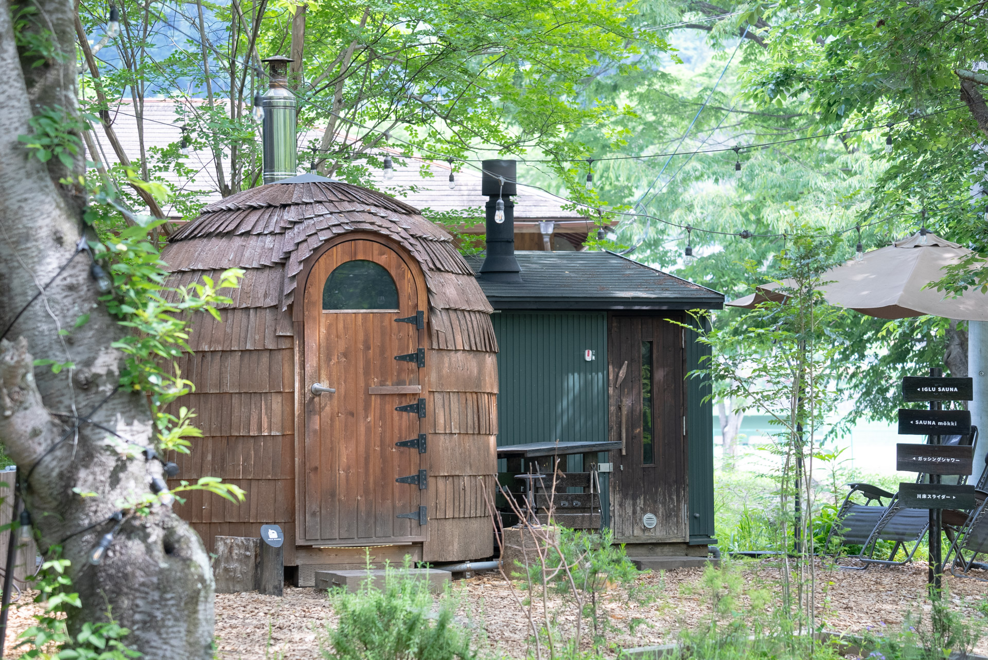 コモリバは、一級河川の都幾川(ときがわ)を目の前に臨む全12室のスモールリゾート施設。施設内には、貸切のプライベートサウナとしてエストニア製サウナの「イグルーサウナ」フィンランドのサウナ小屋を再現した「サウナモッキ」を常設。みんなで入るパブリックサウナエリア「moku」には薪焚きストーブを搭載したサウナトレーラー「ASEMA」と、ワゴン車を改造した希少な「サウナワゴン」、「イグルーサウナ」と2種・3温度帯の水風呂が備わっています。